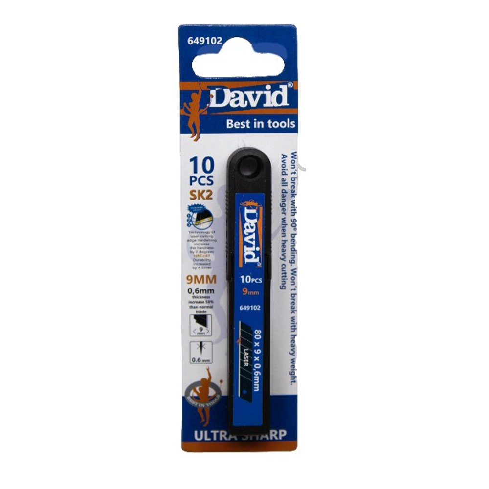 Die David Reserve-Messer 9 mm SK2 sind geeignet für das 648102 David-Messer ABS 9 mm SK2 ZB. Diese Messer sind die perfekte Ergänzung für dein Messerset. Die Nachfüllmesser werden in einem Set von 10 Stück geliefert und sind für den langfristigen und intensiven Gebrauch konzipiert.