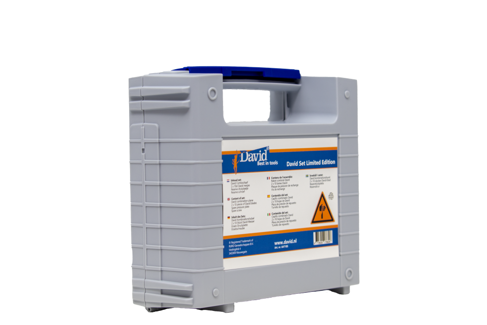De DAVID combi schaaf set LIMITED Edition is een complete, hoogwaardige set die elke vakman en hobbyist zal waarderen. Deze set wordt geleverd in een stevige koffer met twee sets van 10 reservemesjes, een montageschroef en een reserve drukplaatje, zodat u altijd bent voorbereid op elk project. De DAVID combi schaaf zelf heeft een tweezijdig snijdend beitelmesje, waarmee u nauwkeurig kunt schaven, krabben, steken en snijden. Dit veelzijdige gereedschap is geschikt voor het bewerken van uiteenlopende materialen, zoals hout, kunststof, leer, board en rubber.